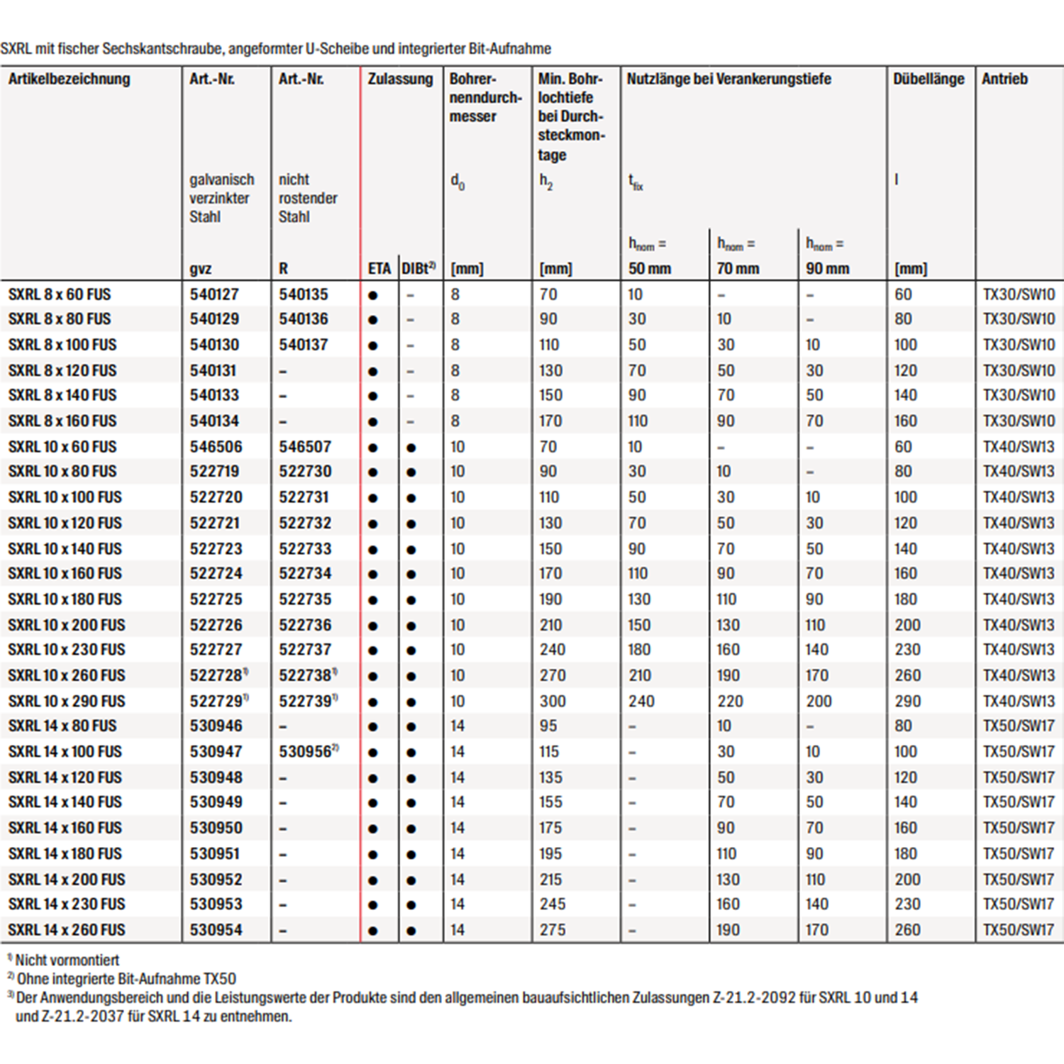 - Der SXRL mit Nutzlängen bis 290 mm bietet für jede Anwendung den richtigen Dübel.