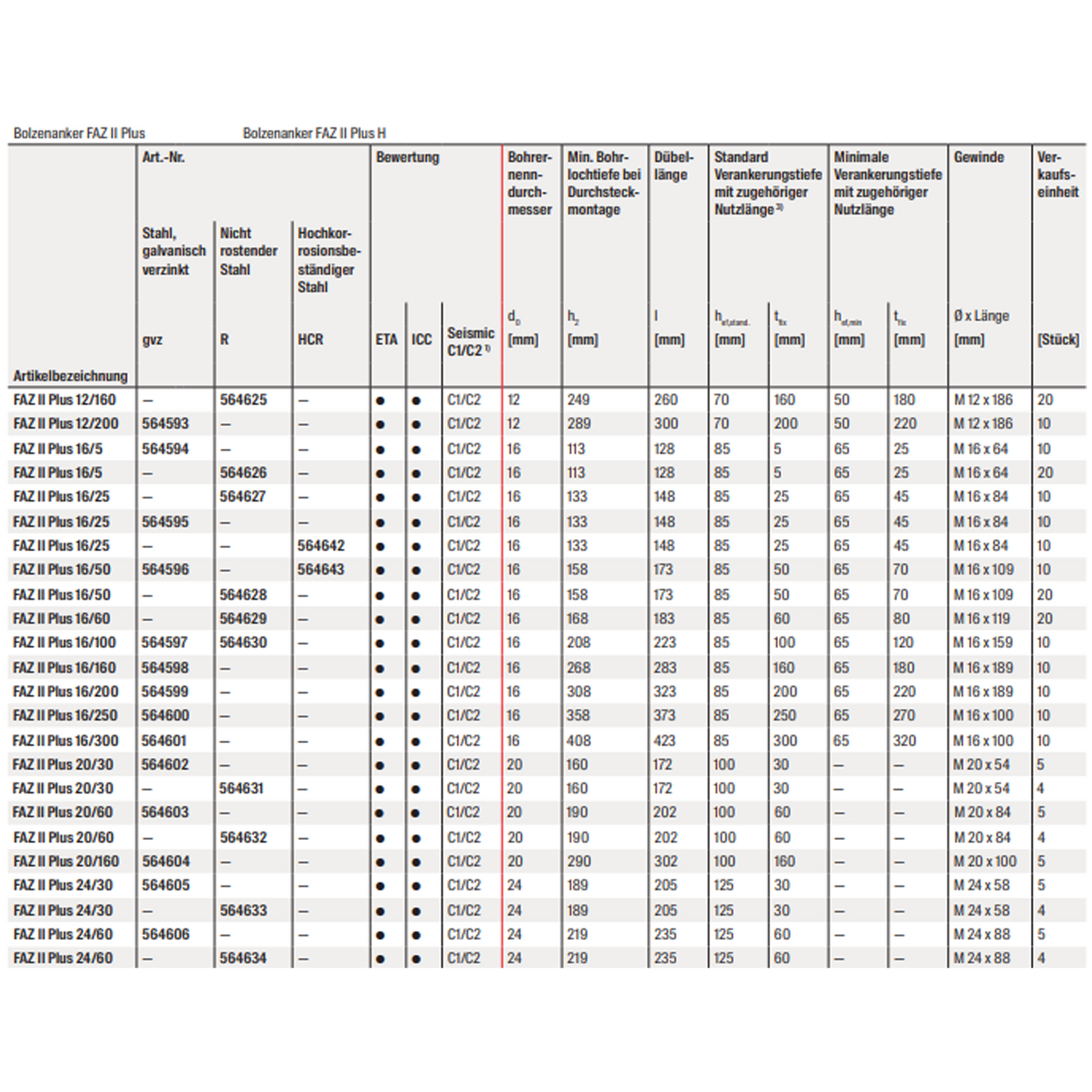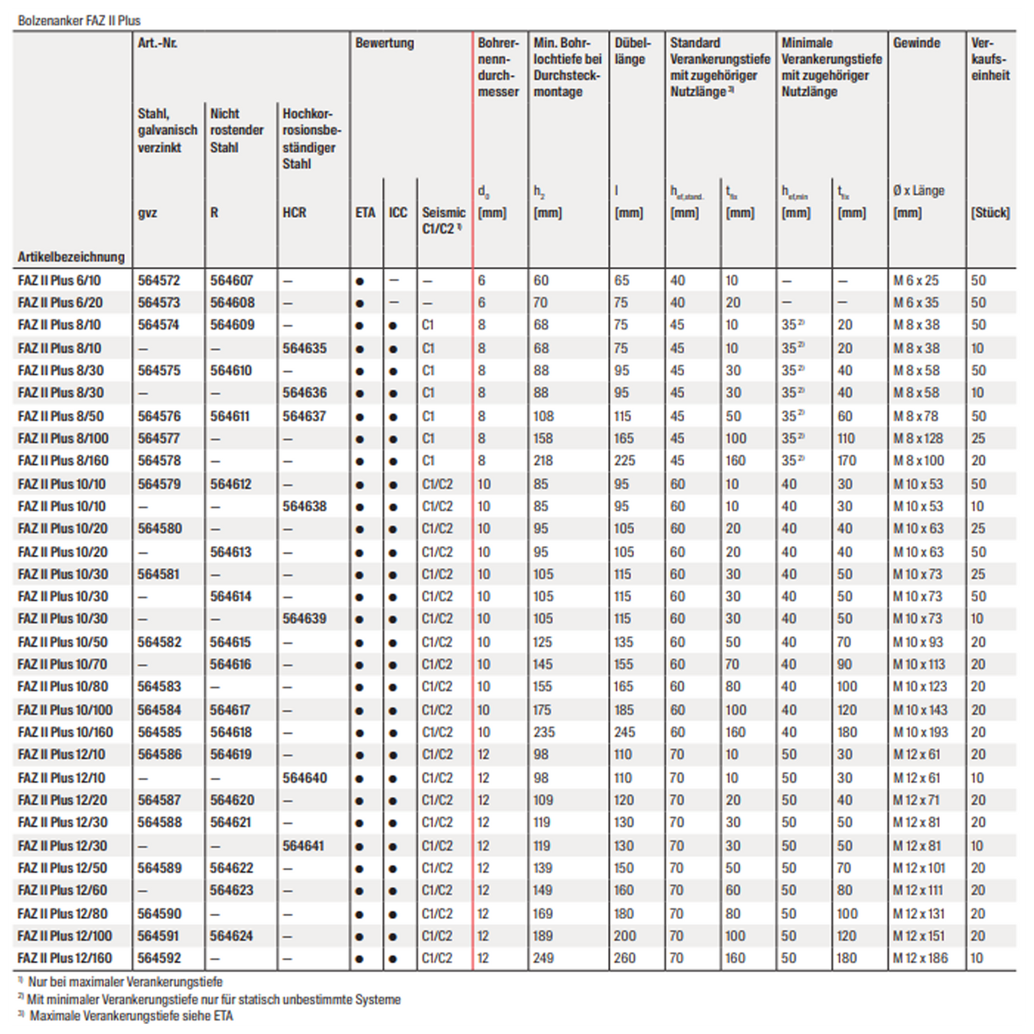 - Die neue ETA bestätigt den Einsatz des FAZ II Plus für dynamische Beanspruchung für die Durchmesser M16-M24.