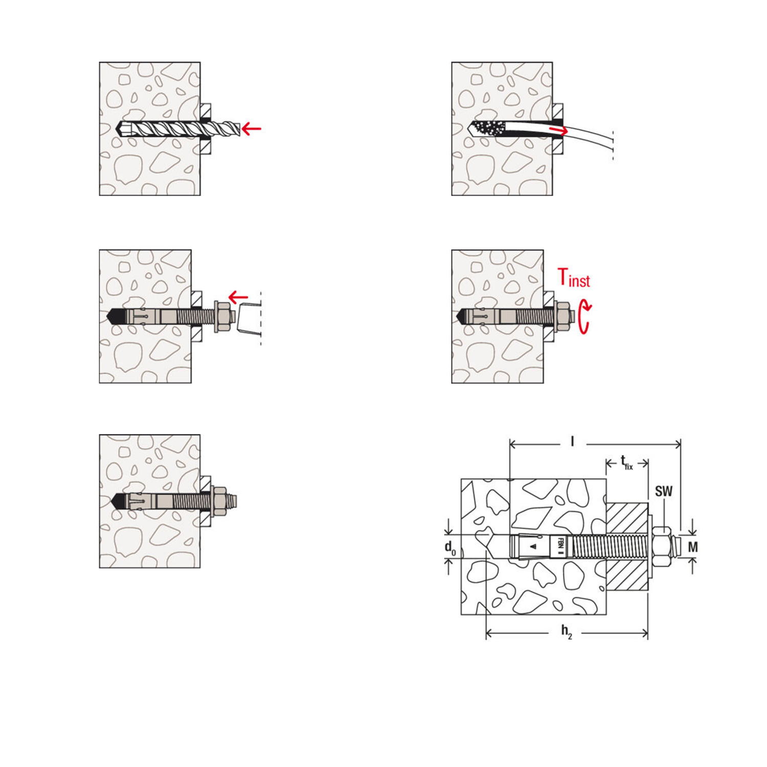 - Bei Serienmontage empfehlen wir die Verwendung des Bolzenanker- Setzwerkzeugs FABS.